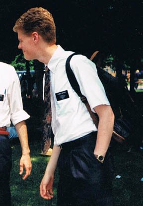As missionaries we had several ways to reduce the uniform alienation. We would not tuck the tie under the last fold so the knot was hidden. We would wrap the tie around the knot a few more times and make the entire tie much shorter and the knot too fat. Every missionary apartment had a drawer filled with musty old abandoned missionary suits and we wore the most tattered, out-of- style, ill-fitting one we could find as sort of a badge of honor. We tried to look worse than the homeless tramps.