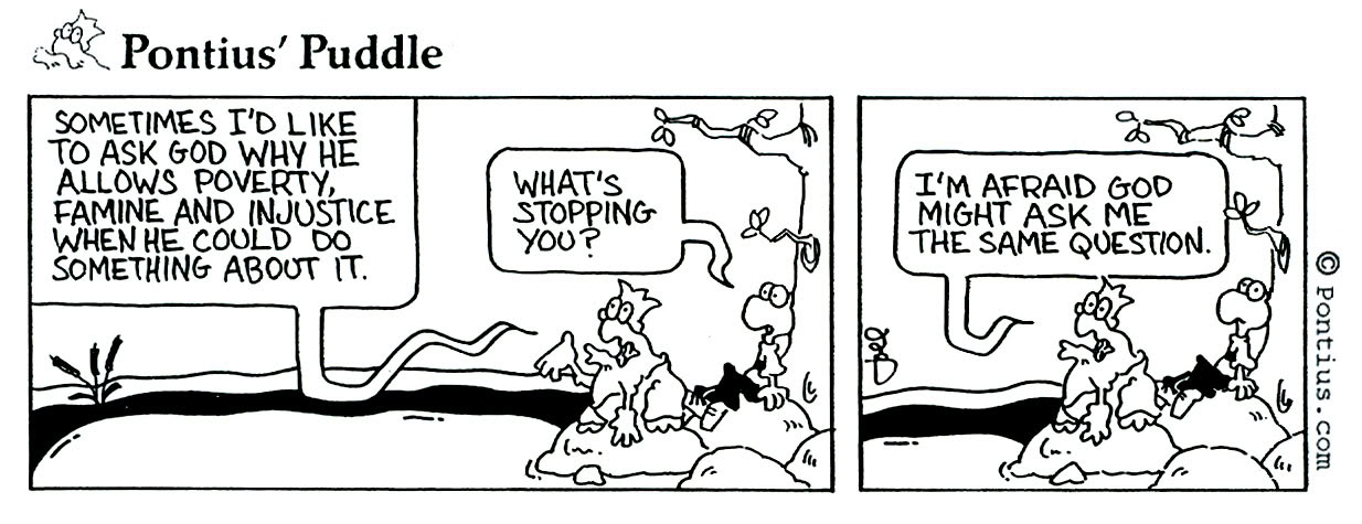 I know you probably get people complaining to you a lot about why you allow injustice in the world. It’s apparently enough of a trope that your followers have developed a response in anticipation of what you would say: