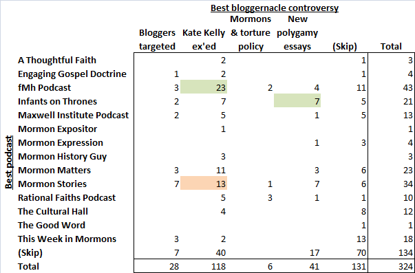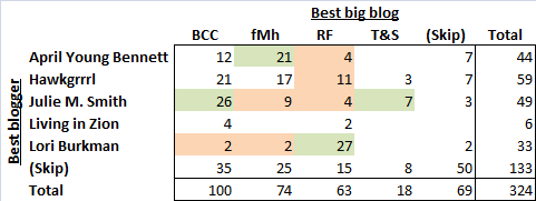 For example, did supporters of the major blogs vote for their own blog’s award? Or did everyone (including T&S fans) hate Mormon of the Year Award?