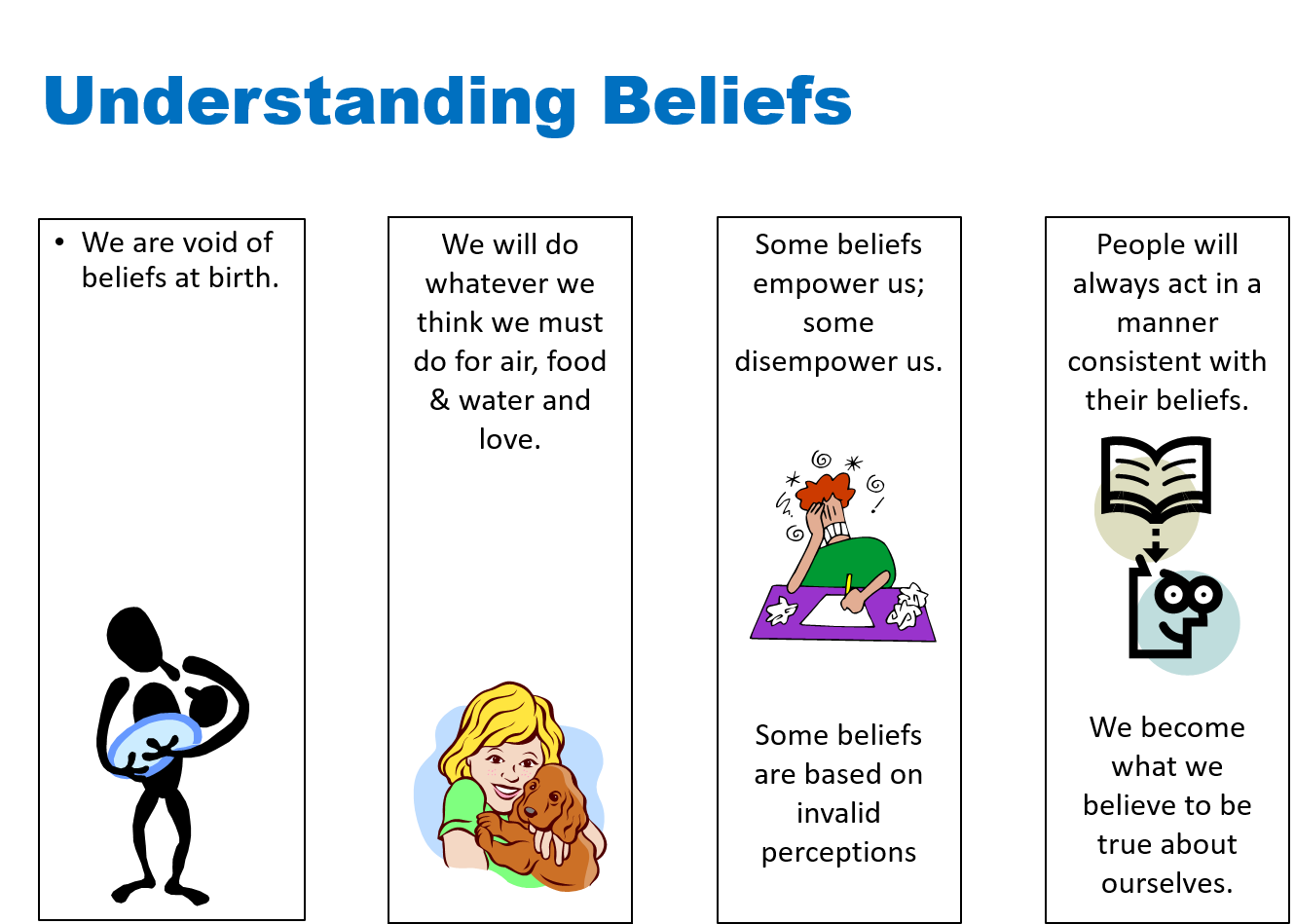 - Some beliefs empower us; some disempower us. Some beliefs are based on invalid perceptions.