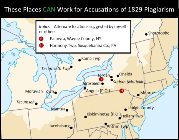 Right. Oneida is really the only strong one to me. I could see Lehigh, but the fact he used the biblical spelling (Lehi) and paired it often with Nephi, a name from the Apocrypha, makes me think a religious text argument is stronger. One thing about the argument that gets me, though, is why he would’ve picked these names. When you look at the most common maps of the area, or even the gazetteers, there are *so* many cooler names to pick from.