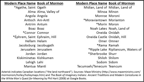 On a separate note, since many of these locations got their names after the BOM publication, would you consider that any former Mormons may have influenced their naming?