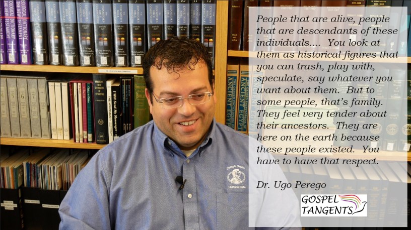 For clarities sake though, I think this article missed the point of what was argued here on W&T. Mike’s argument was that (possibly) Joseph was sterile and/or castrated and that is why he never fathered any children with his polygamous wives – thus the fathers are of course the other gentleman. The argument is meant to fight against all those who loudly proclaim that Joseph was entirely monogamous (which it doesn’t seem likely W&T readers believe anyway…). To prove/disprove Mike’s theory what Mike needs to know is if Emma’s children were fathered by someone other than Joseph as this is proof of Joseph’s sterility. As Emma’s children’s descendants absolutely have Smith DNA, Mike wants to know if Dr. Perego can prove that this DNA means Joseph is the father or is it equally as possible based on DNA alone that Hyrum, Don Carlos, William, etc. were the fathers?