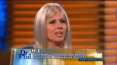 [2] In her interview with Dr. Phil (scroll to the bottom; she’s the woman in the blond wig), she claimed a “period of self-exploration” and he called her on it — sociopaths don’t “self-reflect”, he said. “That’s inconsistent with sociopathy”, he said, basically implying she’s a fraud. He seems to think she’s not truly a sociopath because “they’re just users and abusers”.