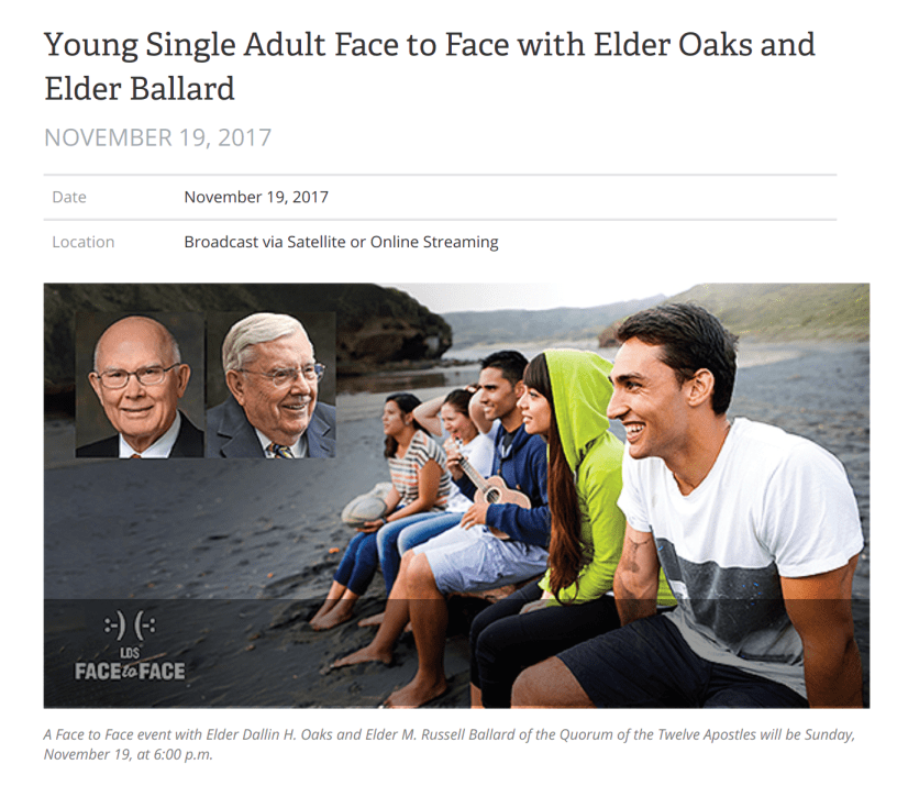 The recent video of Elders Ballard and Oaks discussing their upcoming face-to-face event, especially their comments regarding submitted questions, piqued my interest in those questions. In the video, Elder Oaks mentions that many questions were about repentance, specifically how one should repent. Oaks makes a joke of it. Elder Ballard later mentions that there are many tough questions – questions without answers – and he jokes that the two of them will avoid those questions.
