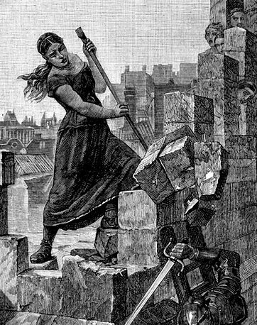 Women and children performed a strategic role in forming armies or defensive colonies and increasing morale as well as lowering the monetary cost of warfare. They also had a close physical and functional relationship to the army for protection and supply. Historically, the breakdown of the front, and particularly the fighting in cities led to women being involved in combat. The Book of Mormon doesn’t record women’s role in combat, but it is still likely, especially in urban combat, or in the camps following the rout of the army. For example, the absolutely horrific account of murder, rape, and rampant cannibalism in Moroni chapter nine helps explain why it sounds as though women and children were included in the army when the Nephites made their final stand (Mormon 6:7). In the abyss of destruction found in Ether 14, the last verse says that “the loss of men, women and children on both sides was so great that Shiz commanded his people that they should not pursue the armies of Coriantumr” (Ether 14:31).[8] Again, the women and children seemed to be included as an integral part of the army. In crusader cities under siege women were recorded as manning the wall with a pot as a helmet.[9] (Some scholars suggest the strange headgear highlighted the otherness of women fighting in a traditionally male domain.) The women normally filled a role as water carries and boosts to morale. Ancient Greeks women and slave would hurl stones and boiling water to kill invading soldiers.[10] Again, note the nontraditional weapons. The women present in crusading camps often faced the enemy when the army was defeated and fled. One account includes a camp follower killing a soldier with a knife. The Muslim victim being killed by a woman was used by writers to make the enemy seem less manly and the knife implied a cooking instrument and not a weapon.[11]