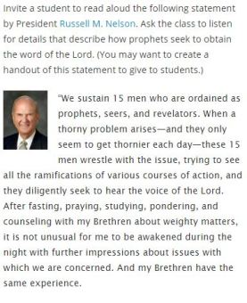 Revelation was given on how to deal with children in Same Sex Households. Why not teach the students how revelation is obtained by apostles and prophets on these kinds of matters?