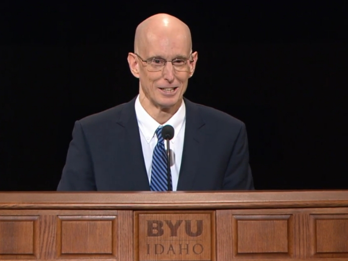 Two days ago BYU-Idaho President Henry J. Eyring (son of apostle and First Presidency counselor Henry B. Eyring) gave a devotional that has caused some stir on social media. A post shared by BYU-Idaho on its Facebook and Twitter feeds showed a quote from Eyring’s talk accompanying a meme of a girl sitting in the wilderness. The quote read, “Whenever I am tempted to doubt the Church or any of its leaders, past or present, I need only to reevaluate my own spiritual state. I ask myself the question, ‘Am I true?’” Both of those posts have subsequently been removed.[1]