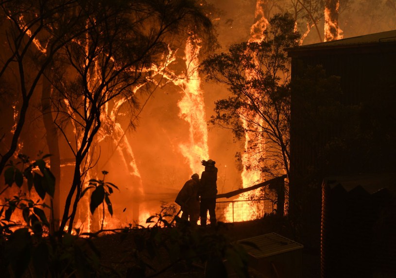 Featured image from The Atlantic website, credited to Dean Lewins / AAP Image via Reuters. Caption: Rural Fire Service volunteers and New South Wales Fire and Rescue officers protect a home on Wheelbarrow Ridge Road during the Gospers Mountain fire near Colo Heights, southwest of Sydney, Australia, on November 19, 2019.