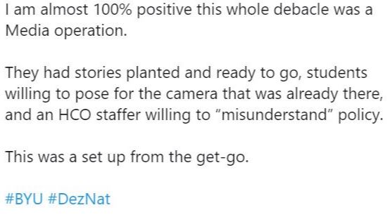 Regarding the broader Church membership, I’m surprised that I have yet to hear tons of talk about it at church. I wonder how much play this will get among membership that doesn’t have some direct ties to BYU. I wonder how they feel about the national news response – or if they feel they are “fake news.” It will be interesting to see if anyone addresses it at the different firesides/devotionals in the immediate future.