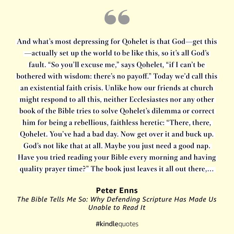 I haven’t yet read Enns. Other popularizers of the same view of the Bible as a library and not a book of answers include: