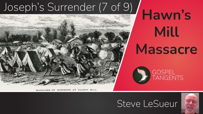 Steve: November 1st was the day of the surrender. So, October 31 was the day the troops showed up, and the hostages went out, and then, overnight to the November 1. By the way, news of the Hawn’s Mill Massacre had reached the Mormons.
