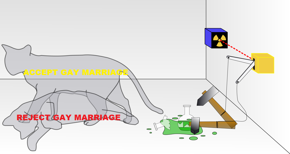 Again, I think there is good reason for people to come to diametrically different interpretations of the statement — I think that the LDS church and newsroom employ intentional ambiguity or plausible deniability to craft statements that can be interpreted in mutually exclusive ways. They are creating the Schrodinger’s Cat of doctrinal interpretations. Further, I think that this is a tool of revelatory potential. I am not a prophet, seer, or revelator, so sorry for the clickbait, as I will not actually solve the mystery or collapse the superposition why the LDS church absolutely is [not] going to accept gay marriage. But I would like to discuss why it might make sense to acknowledge that “Schrodinger’s Cat”-esque statements like these are intentional and could be used to allow both possibilities to live simultaneously.