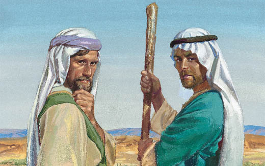 And it came to pass that Laman was angry with me [Nephi], and also with my father; and also was Lemuel, for he hearkened unto the words of Laman. Wherefore Laman and Lemuel did speak many hard words unto us, their younger brothers [Sam and Nephi], and they did smite us even with a rod. And it came to pass as they smote us with a rod, behold, an angel of the Lord came and stood before them, and he spake unto them, saying: Why do ye smite your younger brother with a rod? Know ye not that the Lord hath chosen him to be a ruler over you, and this because of your iniquities? Behold ye shall go up to Jerusalem again, and the Lord will deliver Laban into your hands. And after the angel had spoken unto us, he departed. And after the angel had departed, Laman and Lemuel again began to murmur, saying: How is it possible that the Lord will deliver Laban into our hands? Behold, he is a mighty man, and he can command fifty, yea, even he can slay fifty; then why not us? 1 Nephi 3:28-31.