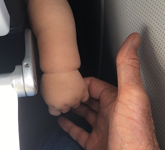 Having spent the last 40 years flying quite extensively for my job, I can vouch for the 700 touch points when flying. The photo above was from a recently trip I took. There was a baby sitting in front of me, and he kept putting his little hand between the seat and the wall of the plane, extending it back into my area. I never saw his face, just the hand. I finally reached out, and he latched on to my finger for several minutes. The best kind of touch points!