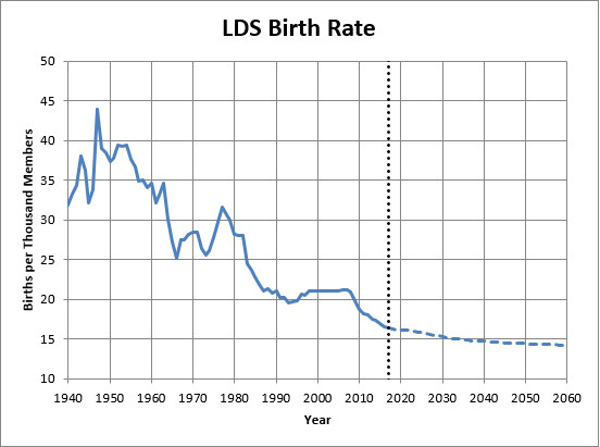 For an excellent report of LDS birth rates, see the website Fuller Consideration. From that website is the below graph.