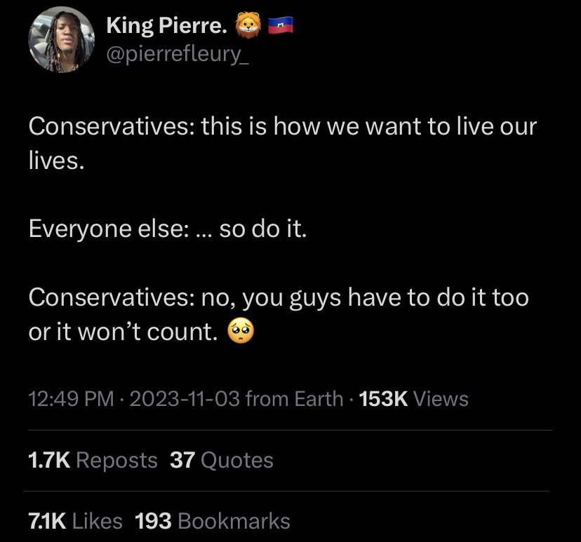No one is forcing Christians to have abortions, have gay sex, or transition genders.
