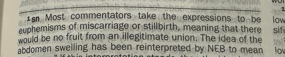 To me this passage isn’t about abortion. Really, so I write something on paper, rinse it on water and have you drink the water, that doesn’t cause anything for any body, and certainly not an abortion in a healthy woman.