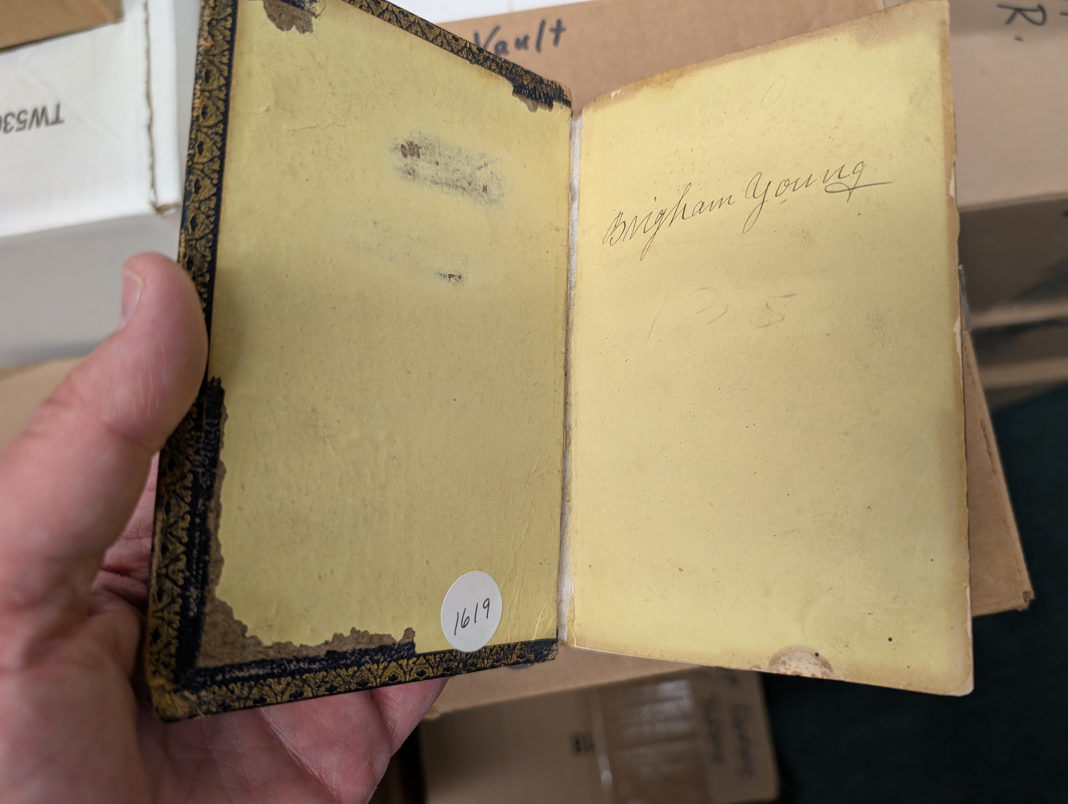 This past weekend, I was able to see the archives for the Nielson-Naylor fundamentalist Mormon group. To my delight and surprise, they had an 1841 copy authorized by Brigham Young in Liverpool, England. I texted Robert a few photos, and he called me immediately asking for more information. They also had an 1871 copy signed by Brigham Young and George Q. Cannon. Robert was excited to include these 2 copies in his census. (Both books were in poor condition.)