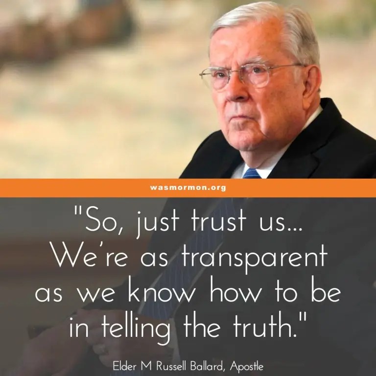 The church has experimented with transparency. Most members have no clue it even happened or that there was an issue. On the church website are explanations about Mountain Meadows, Blacks, and the Priesthood, and I think even the investments the church has. I’ve looked at them, but members I talk to haven’t.