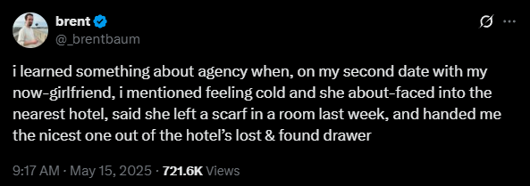 But I think this also captures its drawback. While I recognize that many people can benefit from the idea that “you can just do things,” I am scared of the high agency mentality. It reads to me as lawlessness, sociopathy. Even years before DOGE, I heard Elon Musk held as an exemplar of “high agency.” But now, whatever your view of Donald Trump and the rest of his presidential administration, it demonstrates high agency. There’s no need to wait for Congressional approval or to let court judicial review hold you back when you are highly agentic. You can just do things.