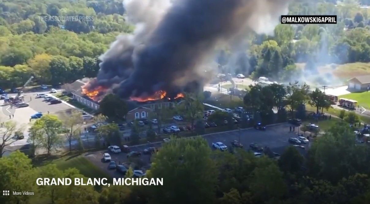 At approximately 11 a.m., an attacker drove their vehicle into the Grand Blanc Stake Center. In addition to starting the building on fire, he shot members before being shot and killed by law enforcement. Being a church congregation, the victims of course included both children and the elderly. As of this writing, there have been both injuries and fatalities. Cell phone footage and aerial imagery confirm the chapel was badly damaged.